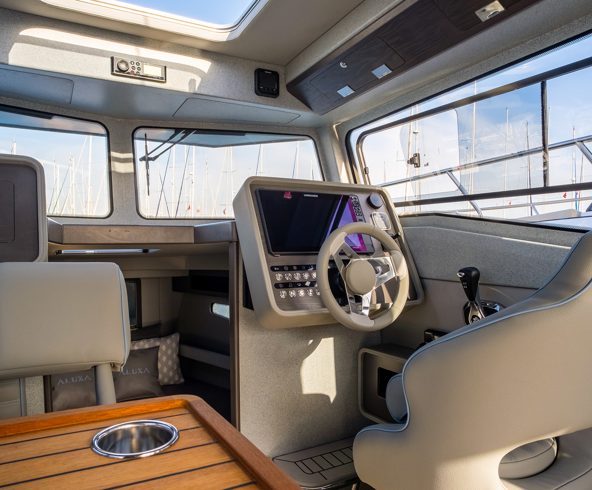 In all ALUXA Smart-boats each detail is developed with the utmost care and attention. Delightful finishing and natural wood create a warm atmosphere. It is pleasant to touch the unique and luxurious marine leather we use in our interiors on one side, and to be confident that it is resistant to the harsh water conditions on the other. All these make ALUXA Smart-boats unbelievably magnificent and home-like cozy.